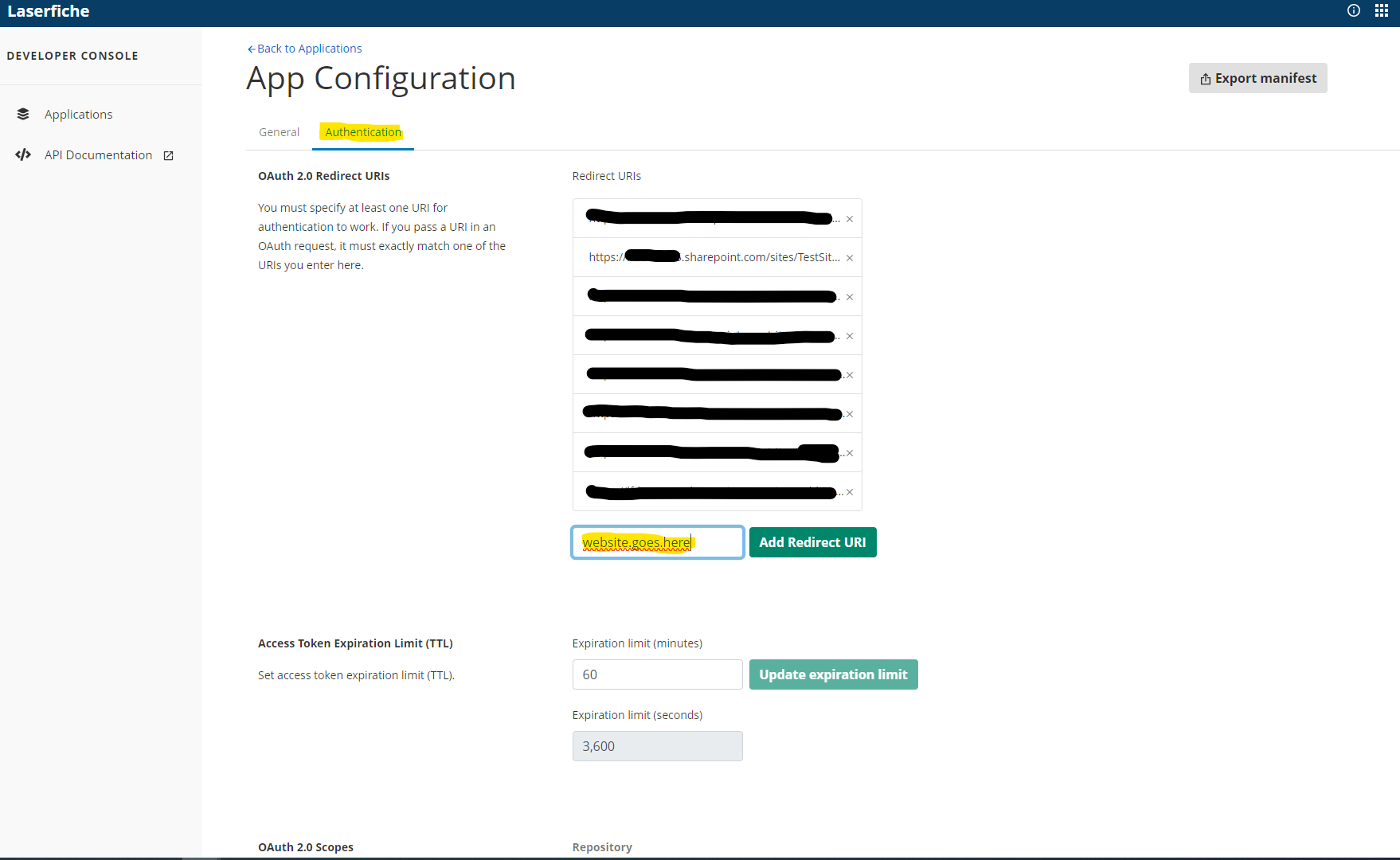 ?autologinand add it to the developer console as a new redirect URI. The URI should end withSitePages/LaserficheSignIn.aspx?autologin.