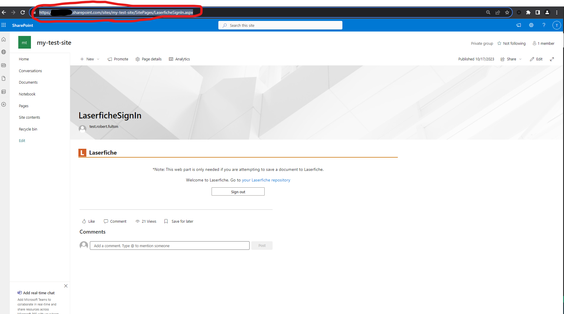 https://subdomain.sharepoint.com/sites/my-test-site/SitePages/LaserficheSignIn.aspx, then the redirect URI you would add to the Laserfiche devconsole would behttps://subdomain.sharepoint.com/sites/my-test-site/SitePages/LaserficheSignIn.aspx?autologin.